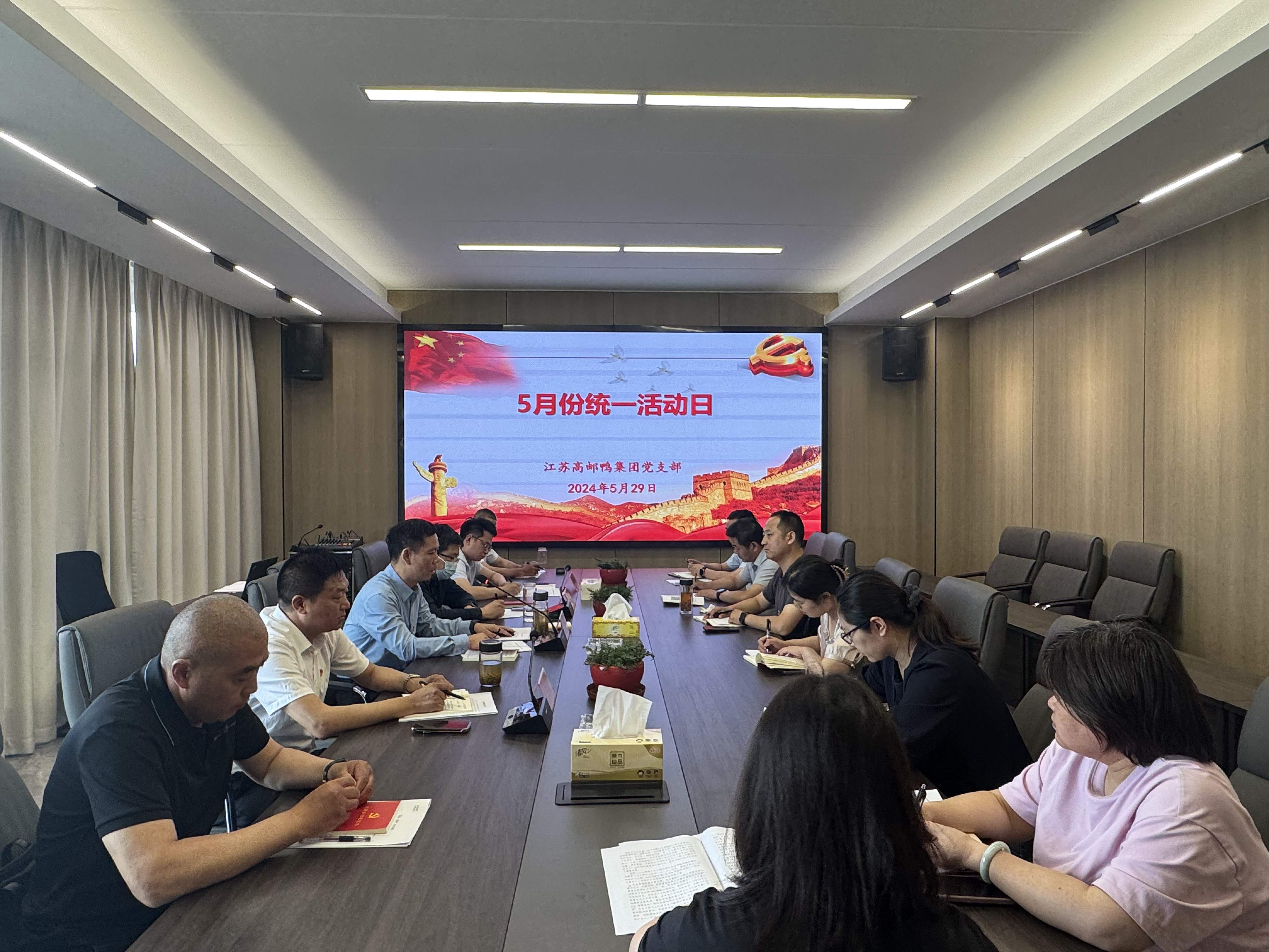 5月29日上午,高郵鴨集團黨支部開展5月份統一活動日活動,會議由梁勇書記主持,支部全體黨員及入黨積極分子參加會議。