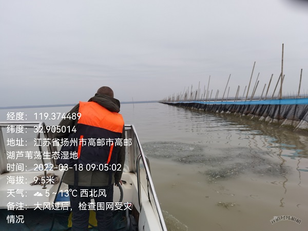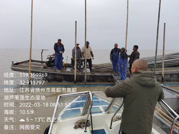 3月18日上午,高郵鴨集團副總經(jīng)理、漁業(yè)基地負責人沈春忠第一時間率相關(guān)人員深入湖區(qū)生產(chǎn)一線督導(dǎo)檢查圍網(wǎng)受災(zāi)情況。