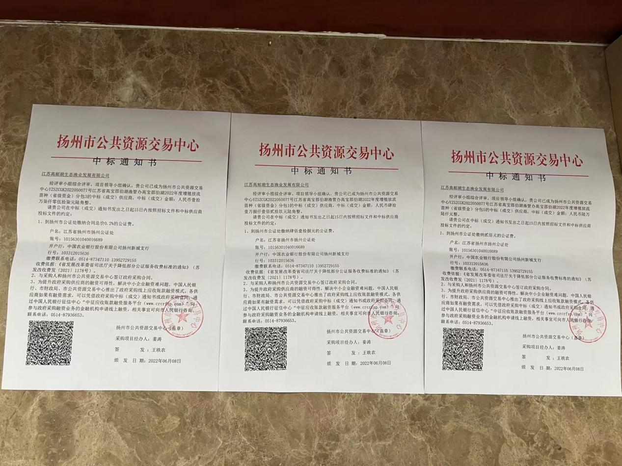 近期,漁業公司參加了揚州市公共資源交易中心組織的江蘇省高寶邵伯湖漁管辦高寶邵伯湖2022年度增殖放流苗種采購項目(省級資金)的公開招標活動,一舉中標鳙魚、鰱魚等三個標段,中標苗種數量12.8萬斤,中標金額60萬元。