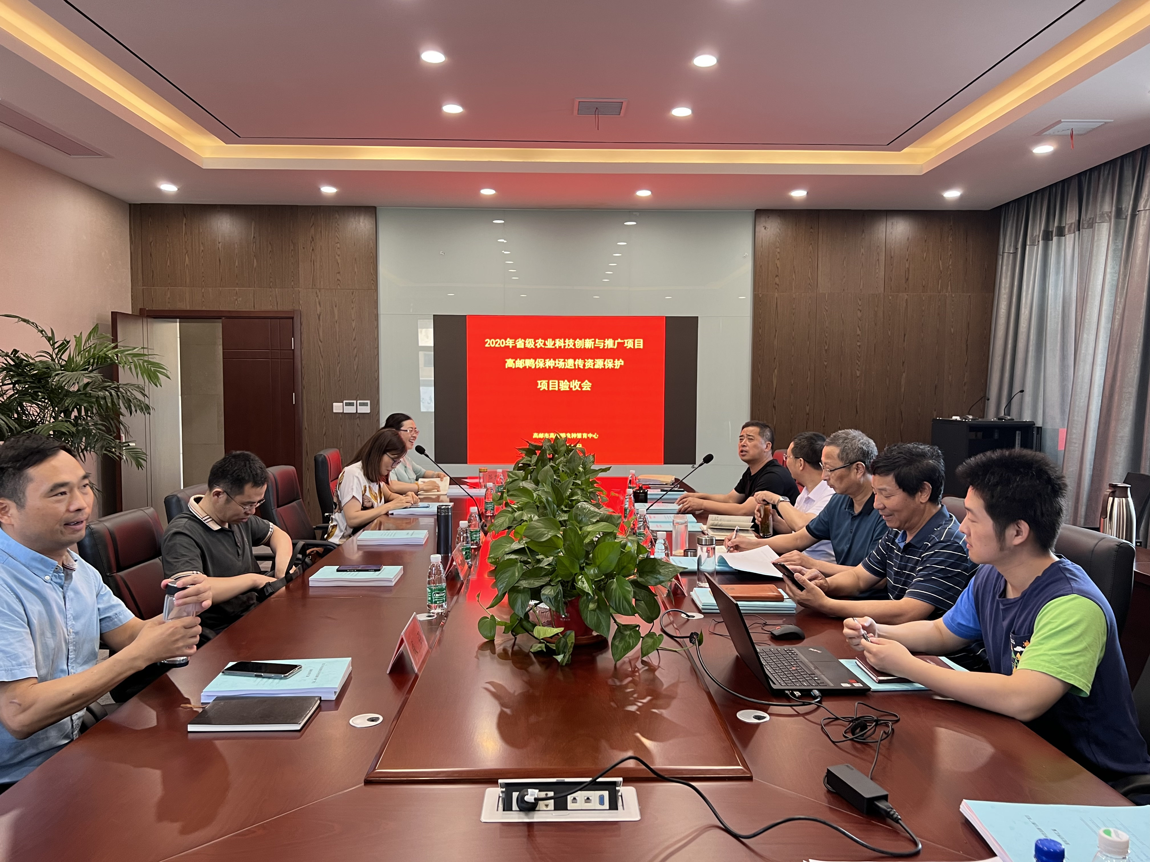 6月16日號上午,高郵鴨集團良種繁育中心召開“2020年高郵鴨保種場、保護區遺傳資源保護項目”“‘蘇郵1號’蛋鴨配套系項目”項目驗收會,專家組全體成員、高郵市鴨集團副總經理、良繁中心主任薛敏開及良繁中心全體成員參加會議、會議由高郵市農業農村局科教科負責人主持。