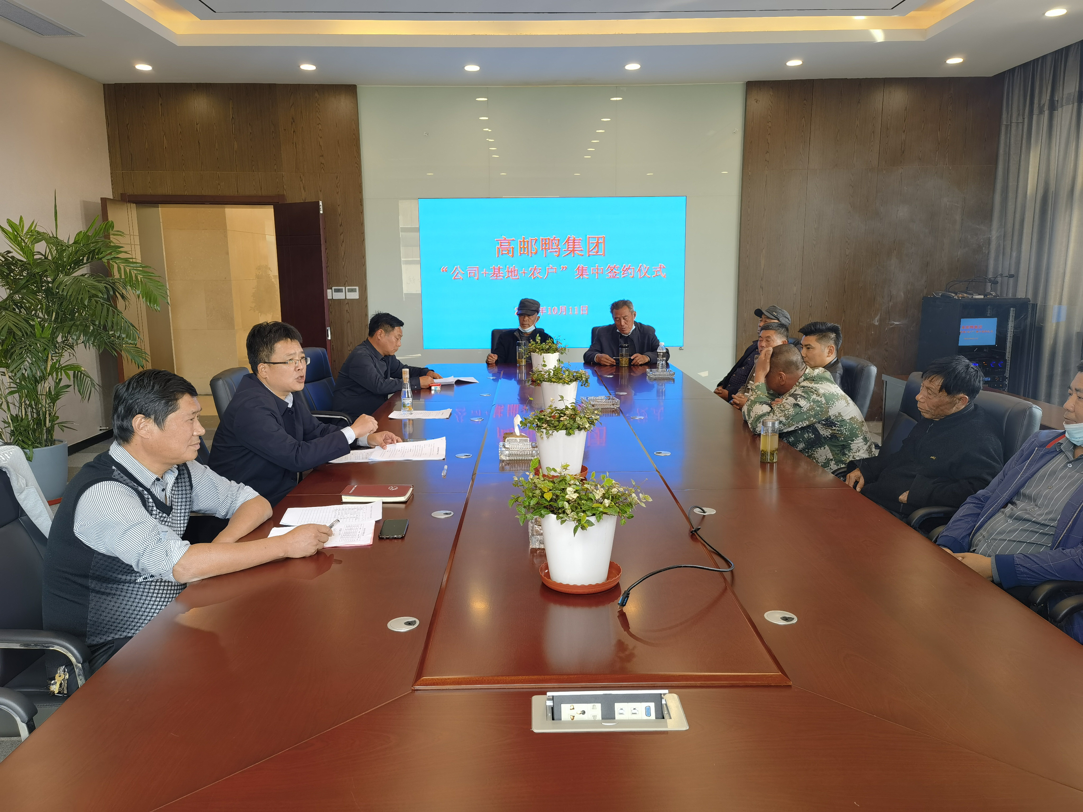 10月11日下午,高郵鴨集團舉行“公司+基地+農戶”養殖大戶集中簽約儀式,來自開發區、高郵鎮、三垛鎮、湯莊鎮、甘垛鎮11名養殖大戶參加集中簽約儀式,合計飼養高郵鴨達53000羽,簽約儀式由鴨集團副總經理查安春主持。