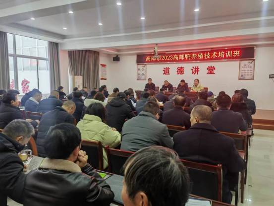 2月13日,為全面提升高郵鴨產(chǎn)業(yè)從業(yè)人員素質(zhì),加快高郵鴨養(yǎng)殖新技術(shù)示范推廣,樹立高郵鴨相關(guān)生產(chǎn)加工企業(yè)及從業(yè)人員的安全意識(shí),促進(jìn)高郵鴨產(chǎn)業(yè)健康可持續(xù)發(fā)展,高郵市高郵鴨良種繁育中心同高郵市農(nóng)業(yè)農(nóng)村局于送橋鎮(zhèn)舉辦2023年高郵鴨養(yǎng)殖技術(shù)培訓(xùn)班。高郵市高郵鴨良種繁育中心主任薛敏開主任主持會(huì)議,并邀請(qǐng)江蘇農(nóng)牧科技職業(yè)學(xué)院朱善元校長(zhǎng)、省農(nóng)科院黃紅英研究員培訓(xùn)講課,送橋鎮(zhèn)、菱塘鄉(xiāng)農(nóng)業(yè)農(nóng)村局畜牧獸醫(yī)條線負(fù)責(zé)人、鄉(xiāng)村獸醫(yī)、村級(jí)防疫員以及高郵鴨養(yǎng)殖(場(chǎng))戶代表、高郵鴨相關(guān)生產(chǎn)加工企業(yè)代表,高郵鴨養(yǎng)殖的小農(nóng)戶,共120余人參加會(huì)議。