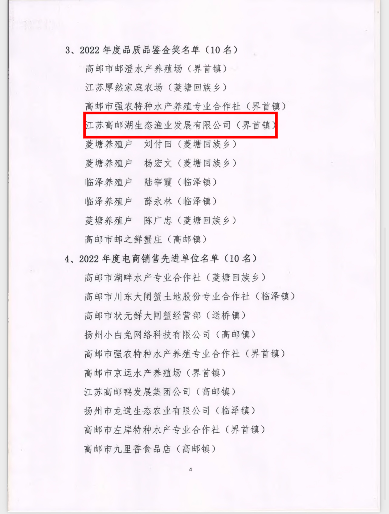 會上,表彰了2022年度生態(tài)優(yōu)質(zhì)養(yǎng)殖和誠信經(jīng)營示范單位、品質(zhì)品鑒和電商銷售先進單位,高郵湖漁業(yè)公司榮獲2022年度品質(zhì)品鑒獎,公司吳光圣副總經(jīng)理接受參會領(lǐng)導(dǎo)頒獎授牌并全程參加了養(yǎng)殖技術(shù)培訓(xùn)。此次獲獎充分反應(yīng)了高郵湖優(yōu)良的生態(tài)環(huán)境,有效提升了公司品牌形象。