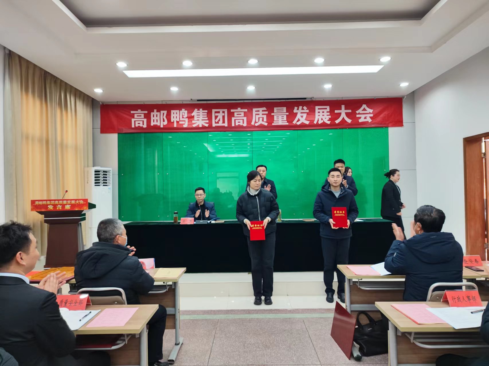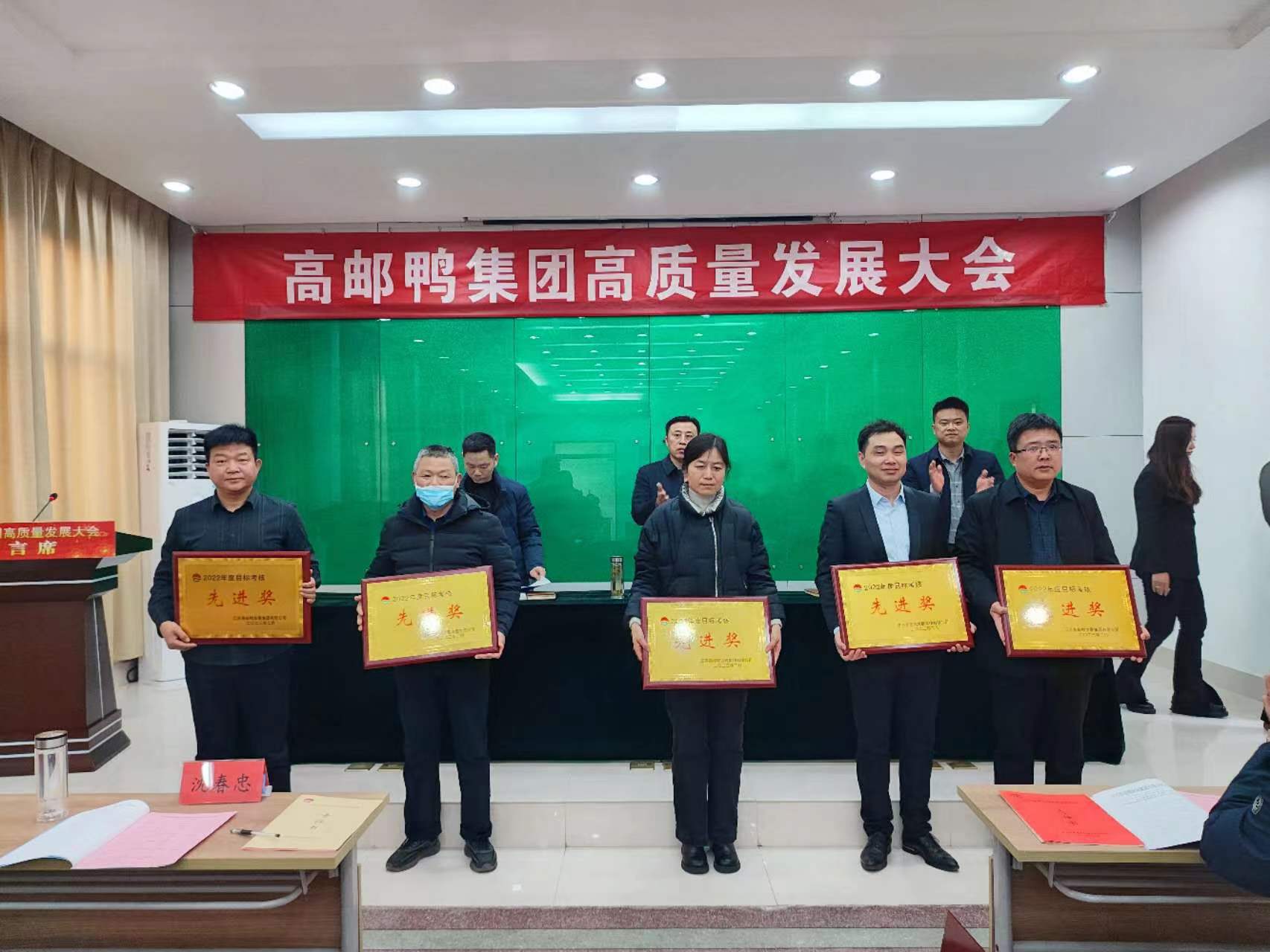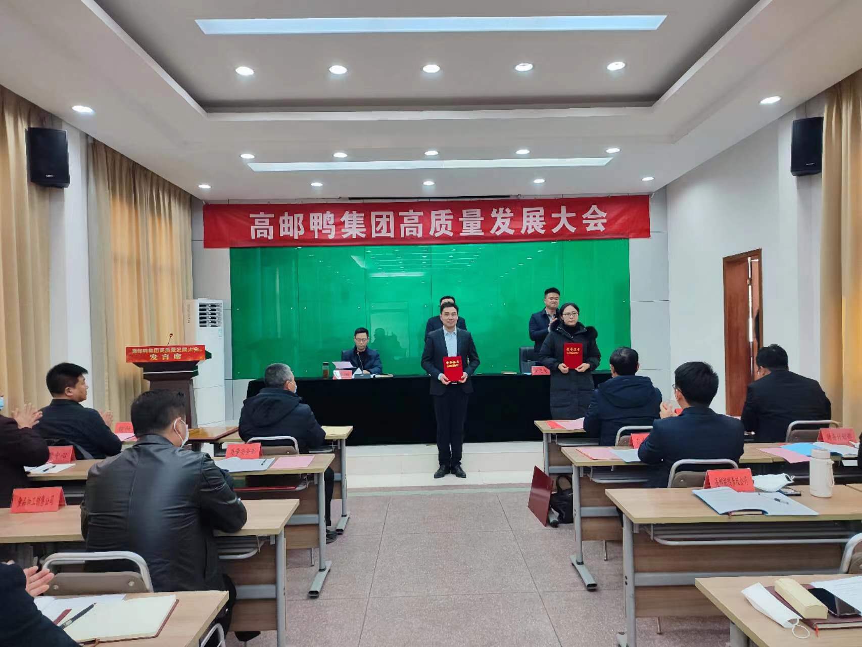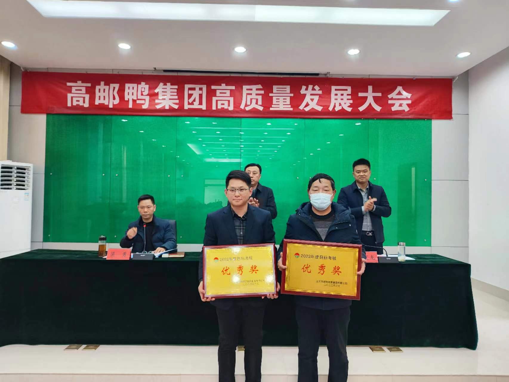 為總結(jié)回顧鴨集團2022年度工作,部署2023年度目標任務。2月20日下午,高郵鴨集團召開高質(zhì)量發(fā)展大會,水投集團黨委委員、鴨集團董事長劉廣游,水投集團副總經(jīng)理黨定龍出席會議,鴨集團全體經(jīng)理班子成員、總部人員、下屬企業(yè)管理人員、獲獎人員及職工代表參加會議,會議由梁勇總經(jīng)理主持。