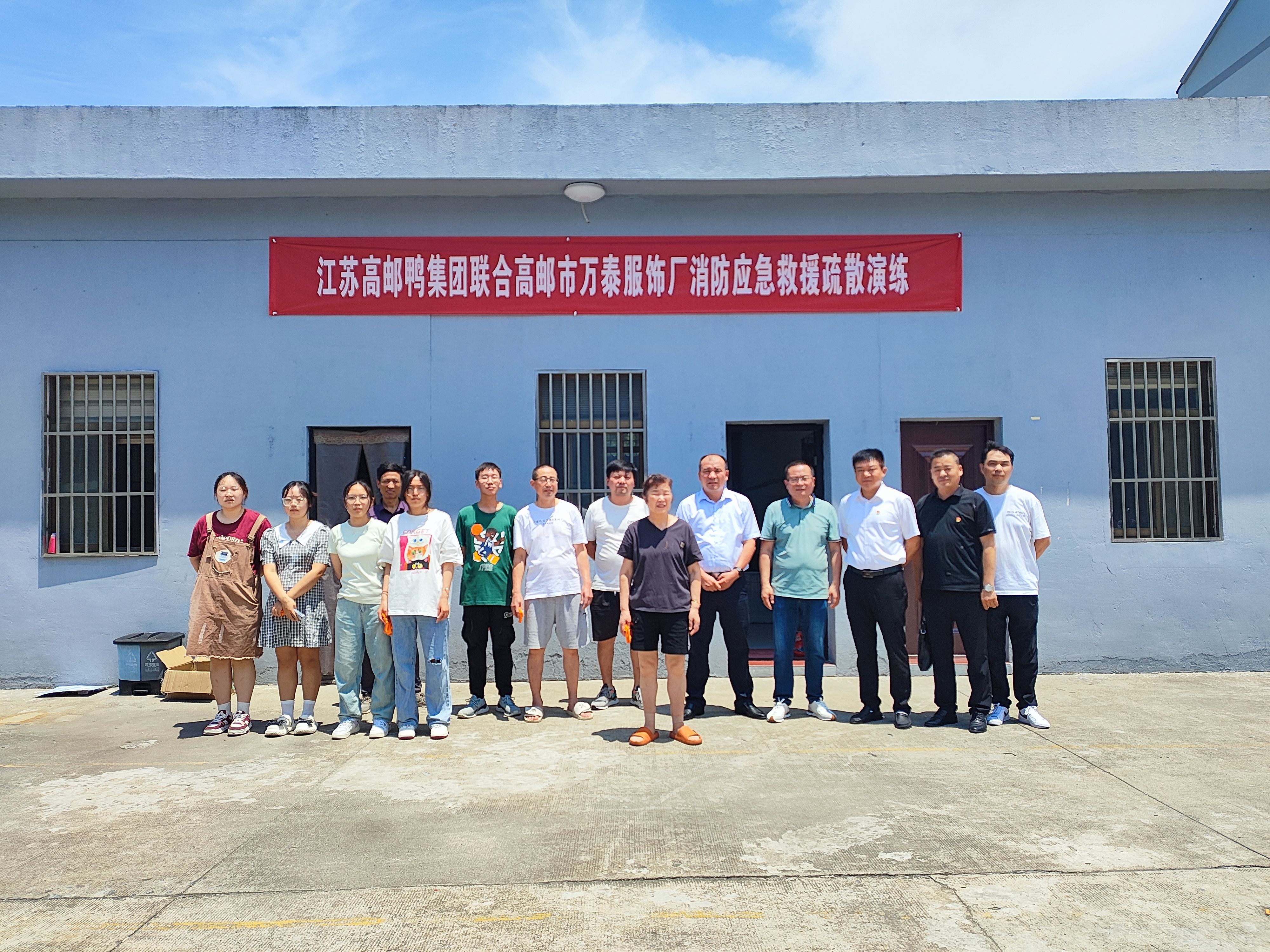 為進一步提升突發事件的應急處置能力,結合“人人講安全,個個會應急”安全生產月活動主題,6月28日上午,高郵鴨集團聯合高郵市萬泰服飾廠組織開展了一次消防安全疏散救援演練活動,水投集團質安部負責人及鴨集團分管負責人、職能部室負責人參加活動。