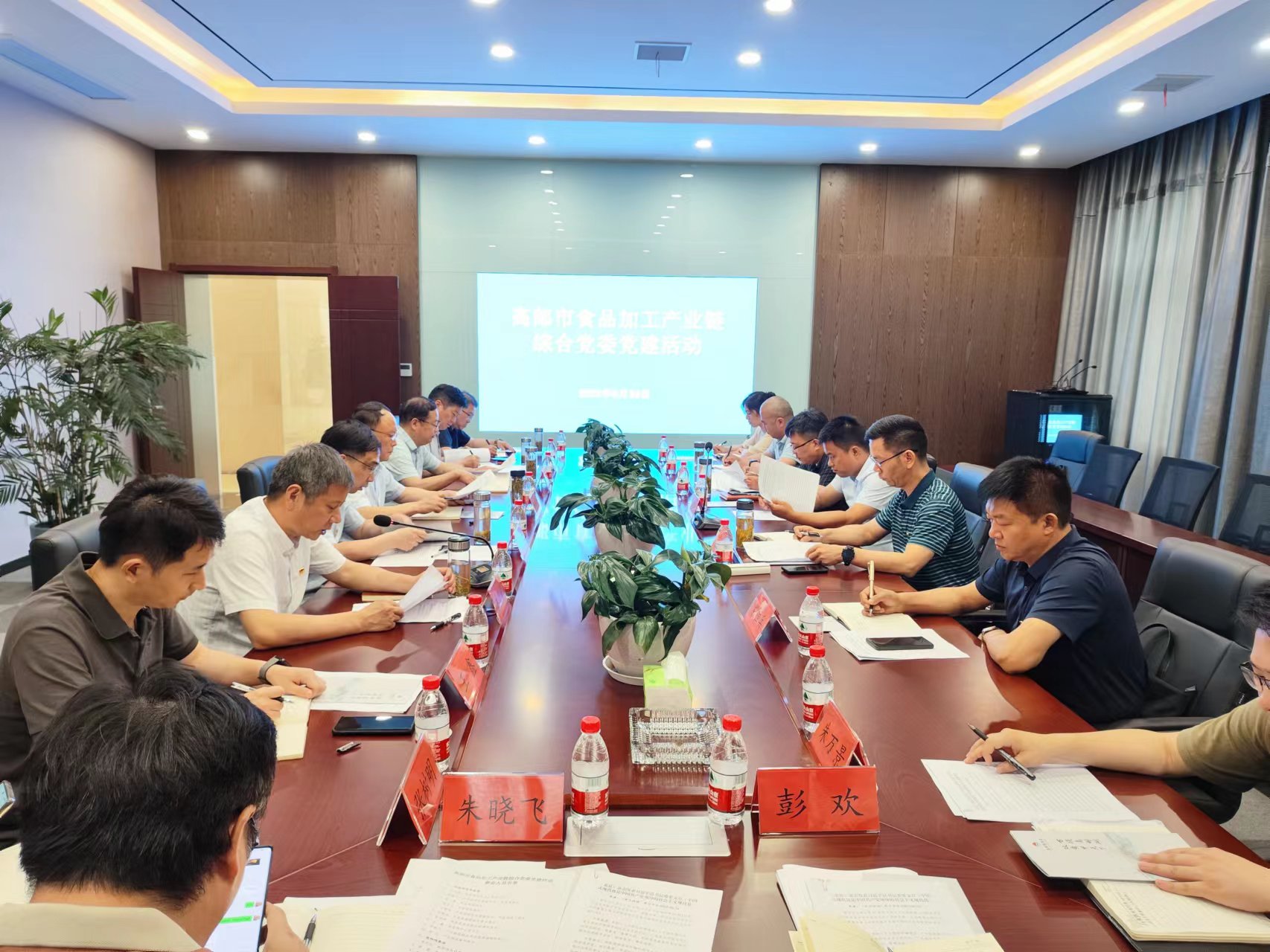 6月26日上午,高郵市食品加工產(chǎn)業(yè)鏈綜合黨委6月份黨建活動在高郵鴨集團召開,高郵市委市級機關(guān)工委副書記李志國,高郵市食品加工產(chǎn)業(yè)鏈綜合黨委書記、市監(jiān)局局長陳維飛,市監(jiān)局副局長張勇,市監(jiān)局副局長楊立冬,高郵市食品加工產(chǎn)業(yè)鏈綜合黨委副書記、市監(jiān)局總工程師王榮宏,水投集團副總經(jīng)理黨定龍,高郵鴨集團黨支部書記、總經(jīng)理梁勇及黨員代表參加活動。