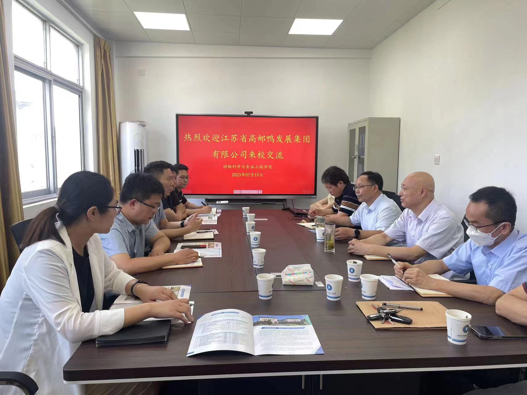 王正昱書記表示,動(dòng)物科學(xué)與食品工程學(xué)院結(jié)合自身學(xué)科優(yōu)勢(shì),圍繞農(nóng)業(yè)產(chǎn)業(yè)科研成果轉(zhuǎn)化,分別與南京衛(wèi)崗乳業(yè)、江蘇立華公司、南京飼料安全研究中心等單位進(jìn)行了合作,并希望加強(qiáng)與高郵鴨集團(tuán)在產(chǎn)業(yè)發(fā)展、科研交流、人才培養(yǎng)等方面深入合作,聯(lián)合破解技術(shù)難題,促進(jìn)產(chǎn)業(yè)良性發(fā)展。