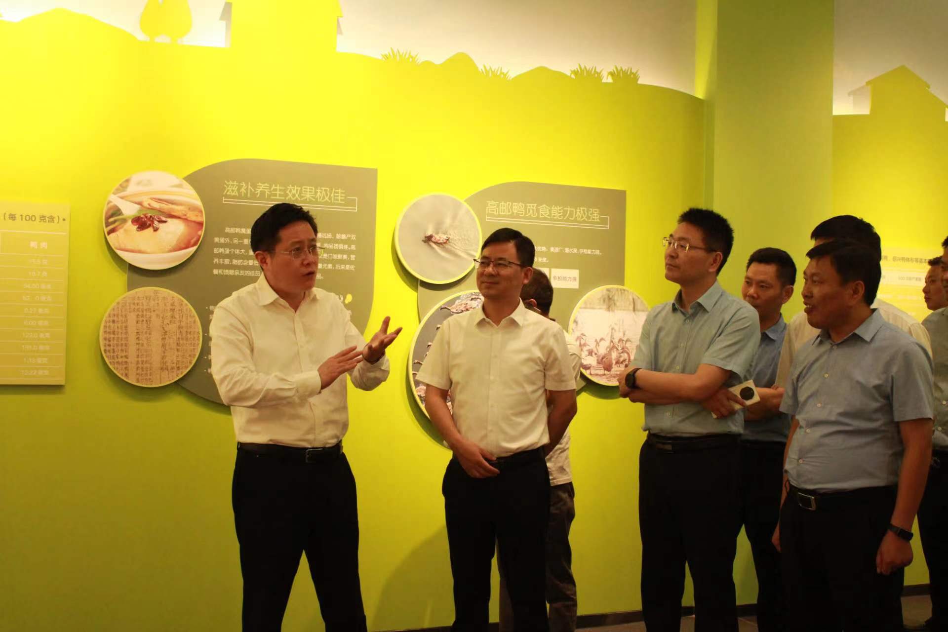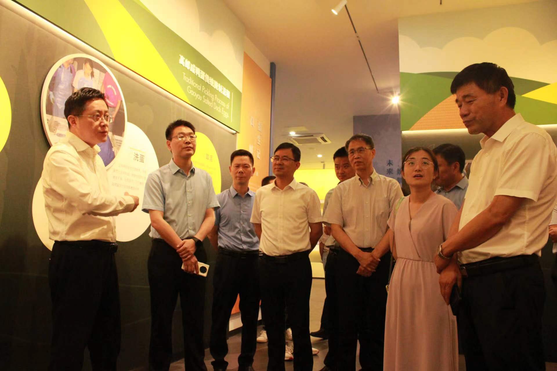 調研組一行實地參觀高郵鴨集團文化展廳和高郵鴨保種、養殖情況,詳細了解高郵鴨集團全產業鏈建設方面工作情況,并就產業鏈拓展延伸科研創新等工作進行深入交流。