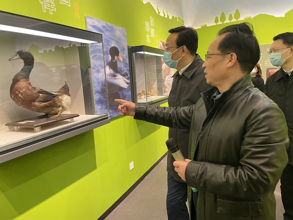 在高郵鴨產業基地現場,水投集團董事長秦超向視察領導一行分別匯報了高郵鴨集團保種擴繁、市場化經營與發展規劃等工作情況;并陪同參觀了高郵鴨文化展示中心,深入介紹了高郵鴨的歷史、人文、產業榮譽、蛋品加工工藝等重要環節。
