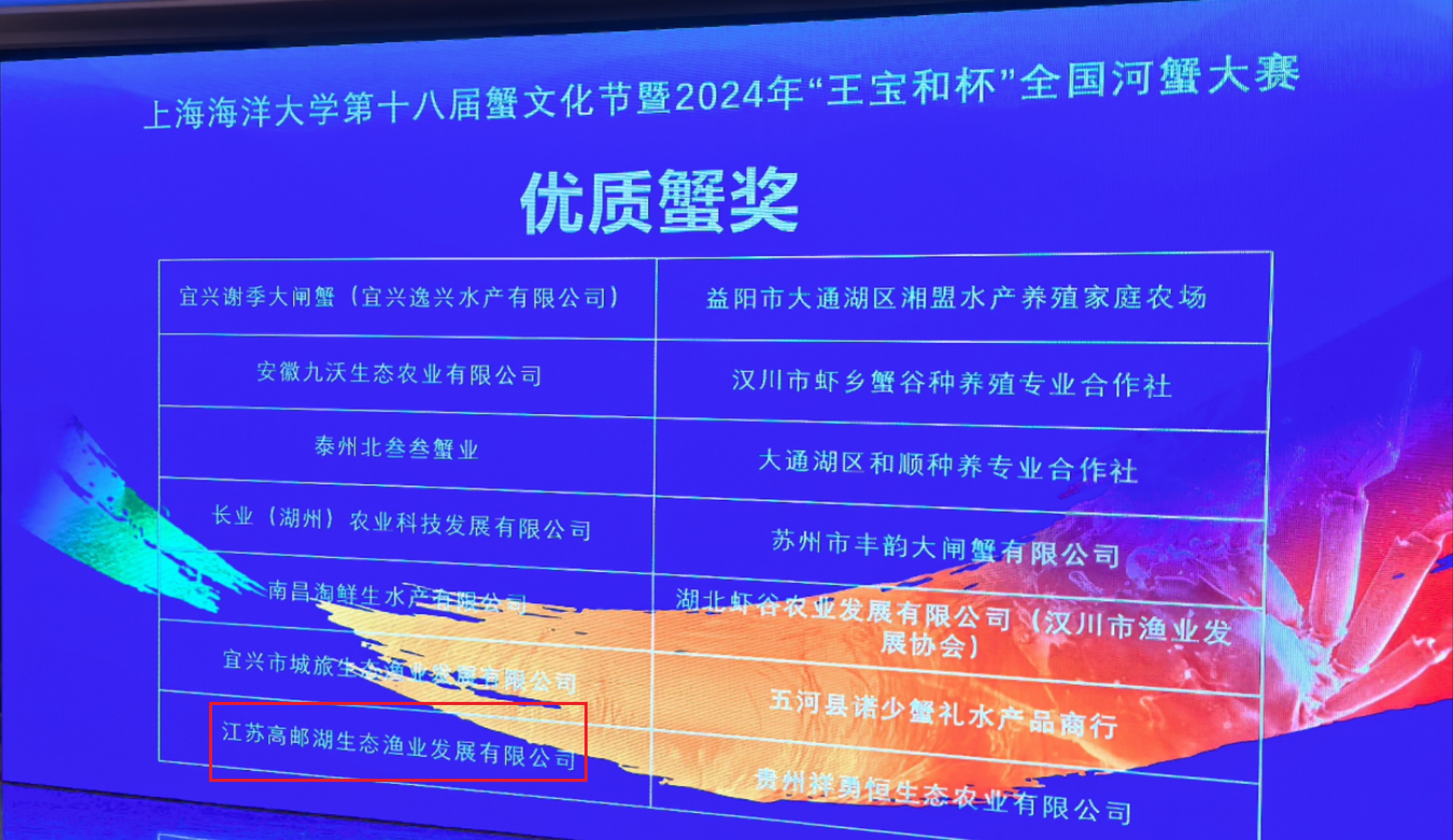 在此次大賽中,各位專家評委始終堅守公平、公開、公正的原則,以專業(yè)的眼光和嚴謹?shù)膽B(tài)度對每一只參賽河蟹進行評判。比賽現(xiàn)場氣氛熱烈,競爭格外激烈,各個參賽單位都拿出了自己的精品。最終經(jīng)過激烈角逐,14家獲得優(yōu)質(zhì)蟹獎、15家獲得最佳種子獎、15家獲得最佳口感獎、110家獲得金蟹獎。漁業(yè)公司選送的河蟹脫穎而出,榮獲王寶和杯全國河蟹大賽“優(yōu)質(zhì)蟹獎”榮譽稱號。