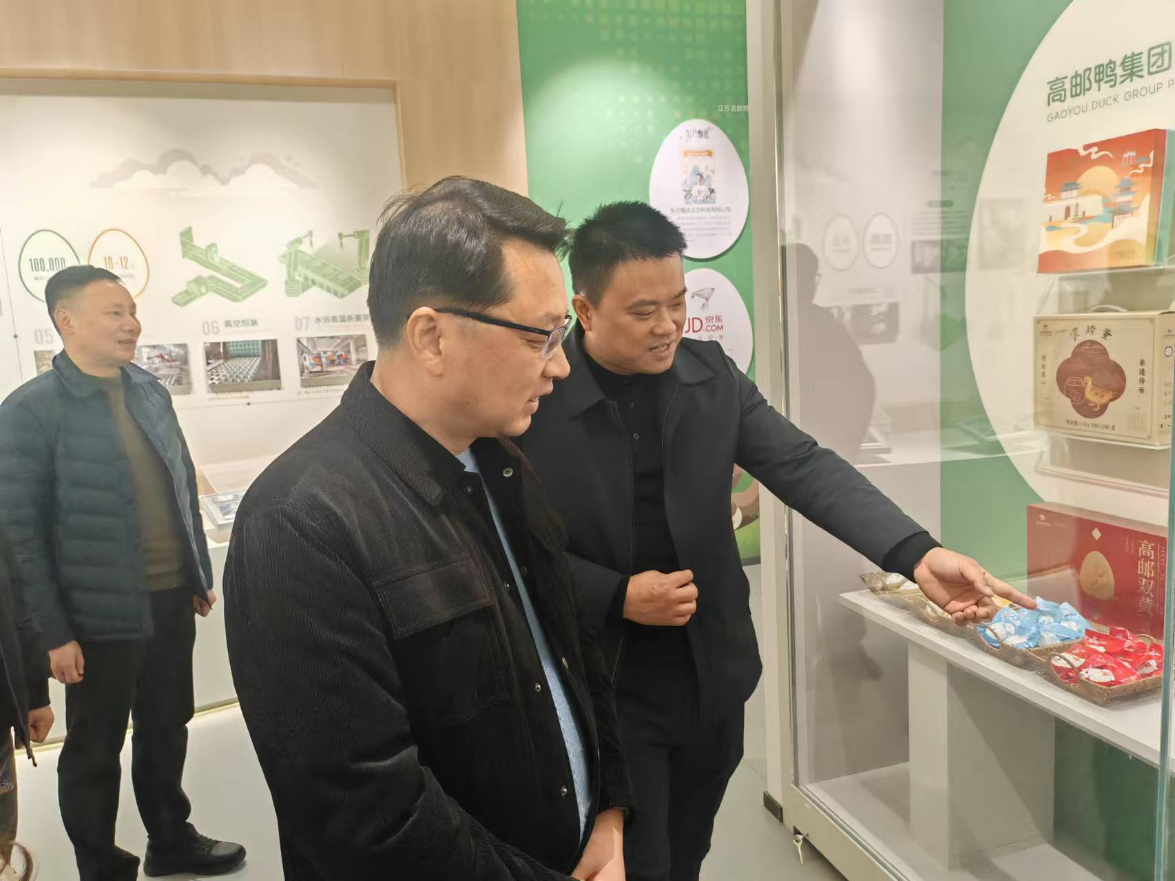 參觀過程中,調研團走進鴨集團企業(yè)文化展廳,詳細了解高郵鴨蛋的前世今生、好水好鴨出好蛋以及鴨集團發(fā)展歷史,并聽取相關負責人介紹鴨集團加工及銷售的情況。