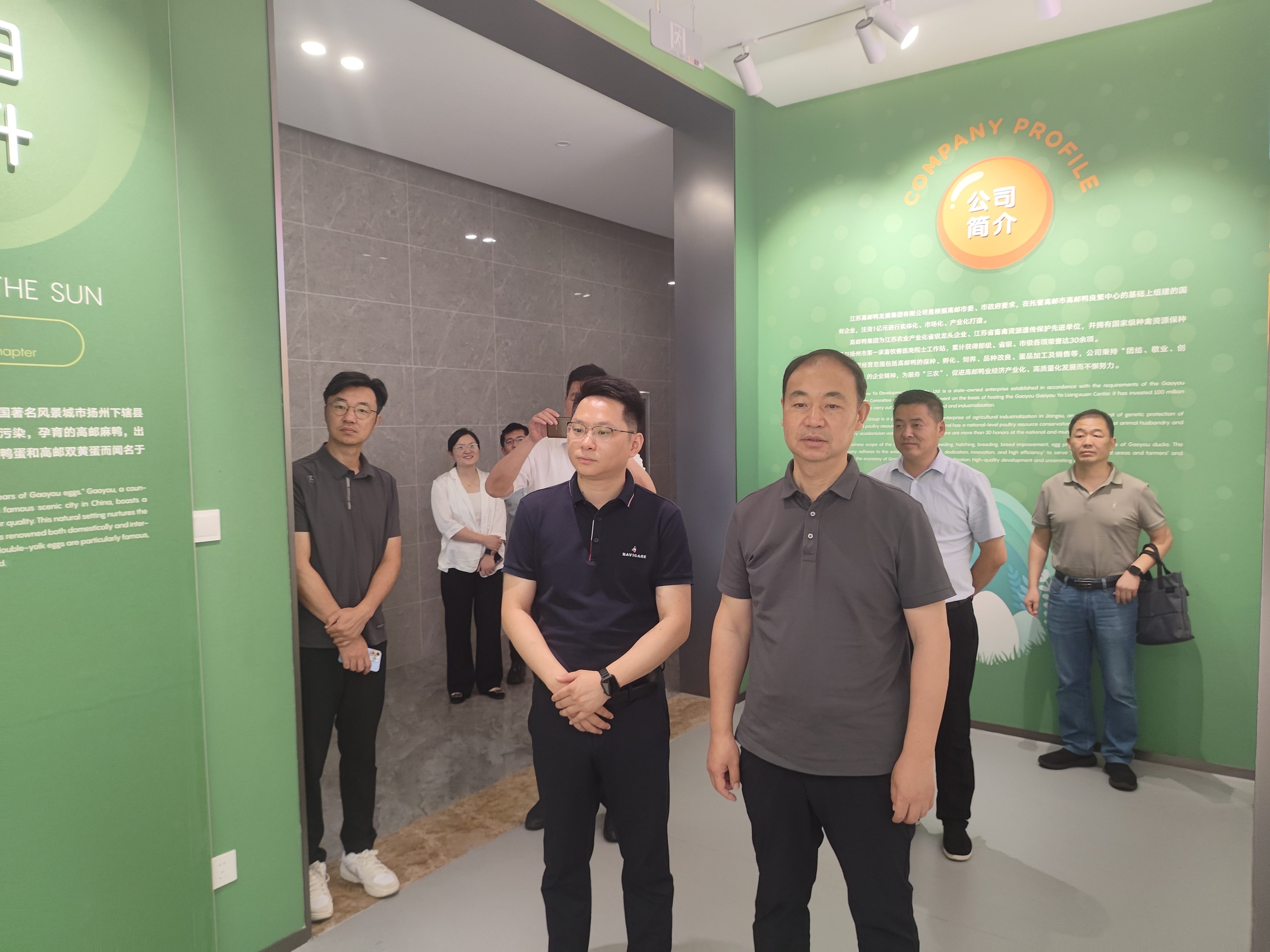 考察過程中,吳永彬一行先后走進高郵鴨集團文化展廳及蛋品加工車間,詳細聽取了高郵鴨蛋的前世今生、高郵鴨集團發展歷程、食品加工銷售體系等方面的介紹。同時,他詳細詢問了高郵鴨集團當前的產值規模、核心產品市場占有率,并走進生產一線,仔細了解蛋品加工的標準化工藝流程。