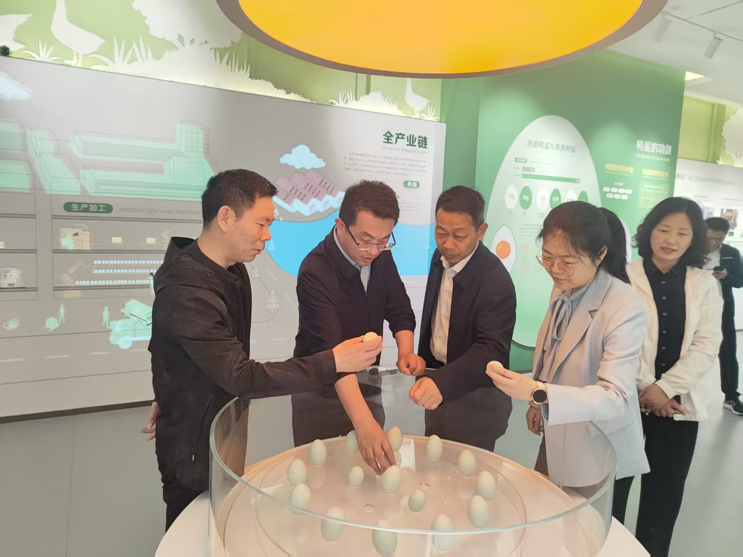 郭永慶一行深入企業生產一線,詳細了解了高郵鴨集團大事記、高郵鴨的品種優勢、蛋品的加工及銷售、全產業鏈打造情況。高郵鴨集團總經理梁勇就高郵鴨集團食品加工項目的投資規模、生產能力以及開票銷售等關鍵情況,向調研組進行了全面且細致的介紹。在聽取匯報后,郭永慶對高郵鴨集團“兩期聯動、延伸產業鏈”的發展思路給予了高度評價。同時,郭永慶鼓勵高郵鴨集團要積極深化與知名品牌的合作。通過借助知名品牌的市場影響力、先進技術和管理經驗,進一步拉長產業鏈條,從養殖、加工到銷售等各個環節實現協同發展,提高產品附加值,為地方經濟發展作出更大貢獻。